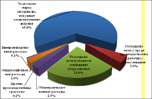 удельный вес в себестоимости производства приборов составляют затраты на сырье