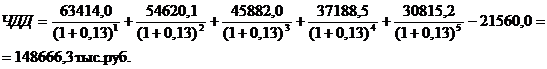 периода, т.к. нулевому году) составляет 148666,3 тыс. руб. (больше нуля).