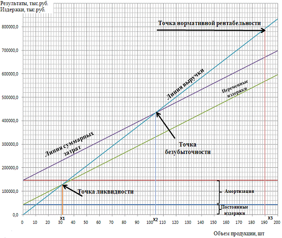 эффект), и чем больше прогнозируемые объемы производства отдалены от точки