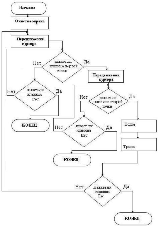trassa(x1,y1,x2,y2); end;;ch=#27;;.