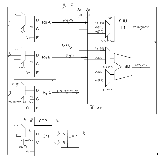 которомы обмениваются ОА и УУ.y: STD_LOGIC_VECTOR (16 downto 0);x: STD_LOGIC_VECTOR