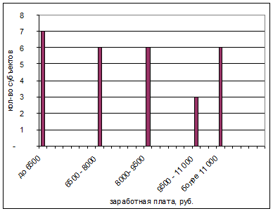 число субъектов (7 шт.) составляет 25% выборки, и имеют среднюю зарплату равную