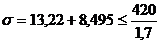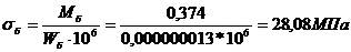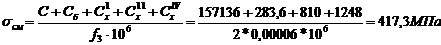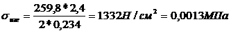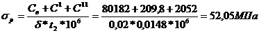 Напряжение растяжения в том же сечении (без учета влияния сил