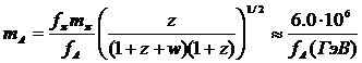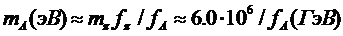 шкале нарушения симметрии, масса аксиона (в эВ) выражается через fA следующим образом :
