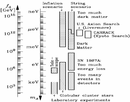 Масса аксиона, равно как и эффективные константы связи gAγ, gAee и gAN, оказывается обратно пропорциональна