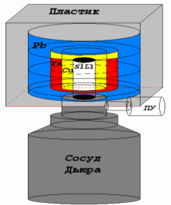 Низкофоновая установка включает в себя пассивную и активную защиту от космического
