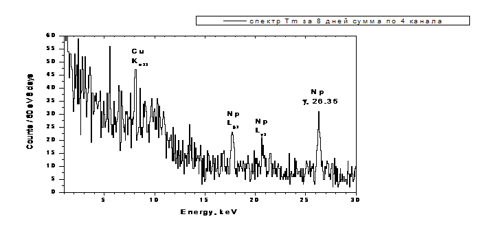 энергетическом спектре Si(Li)-детектора пик 8.4 кэВ,