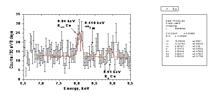 8.41 кэВ равняется (-10 ± 15) событий. Верхний предел на число событий в пике,