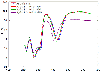 экспериментальных результатов видно, что при бомбардировке зеркал с пленочным покрытием