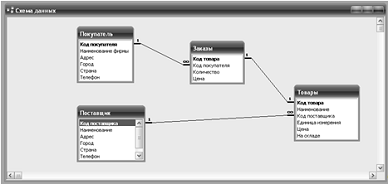изображённая на рисунке 1. На схеме каждая таблица представлена панелью со
