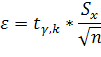 неизвестна, поэтому для определения доверительного интервала ε используем распределение Стьюдента.