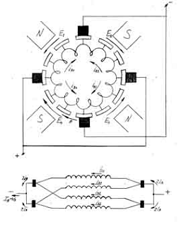 изображено кружком), подключённый к внешнему источнику электрической энергии с