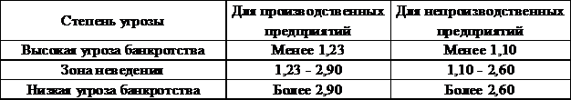 прогнозирования вероятности банкротства предприятия