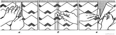 движениями снизу вверх. При этом верхний край полотна гладилки должен быть