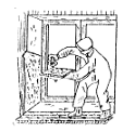 на сокол и, подойдя к окну, кельмой набрасывает раствор на стену, после чего