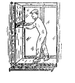 оконной коробке, и движениями снизу вверх выравнивает нанесенный слой
