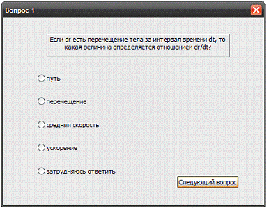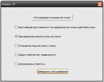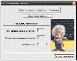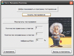 Приложение, написанное на Microsoft Visual C++ с использованием библиотеки MFC. Тестирование по разделу 'Законы механики Ньютона'