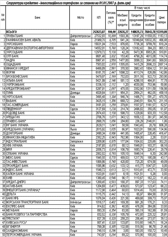 “Приватбанк" та порівняння його діяльності з іншими комерційними банками