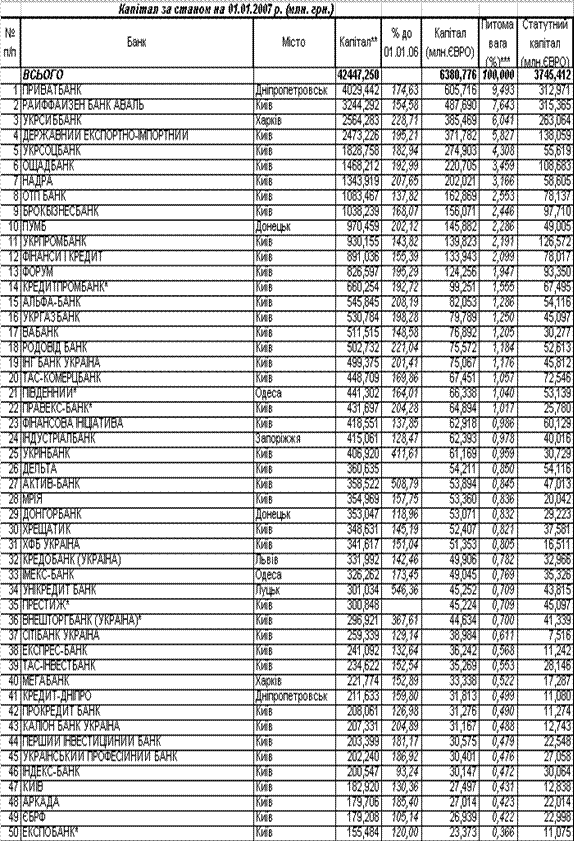 довгострокових активах та пасивах АКБ “Приватбанк" станом на 01.01.2007