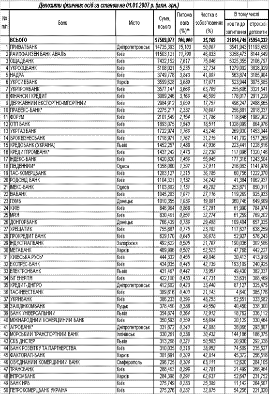 короткострокових активах та пасивах АКБ “Приватбанк" станом на 01.01.2007