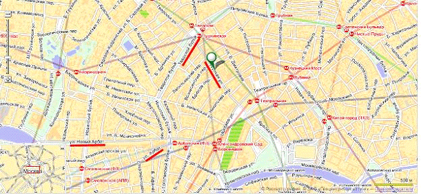 центральными трассами Москвы (Садовое кольцо, Тверская, Новый Арбат) и