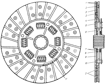 Ведомый диск сцепления 1 - фрикционные накладки;