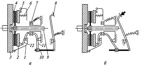 плавно отпускается педаль сцепления, рычаги 10 и 6 под действием пружин 4
