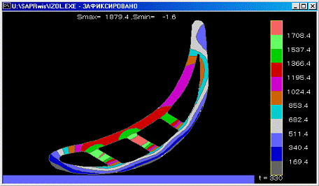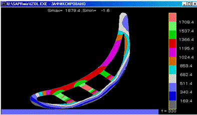 Рисунок 6.1 - Распределение возникающих напряжений в охлаждаемой лопатке.