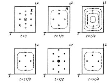 электромагнитный процесс является двумерной стоячей волной, которая существует