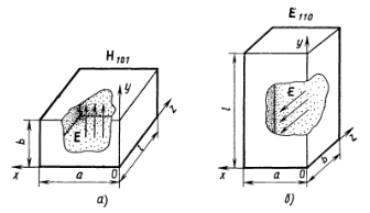 поля в объемном резонаторе, образованном отрезком прямоугольного волновода.