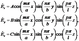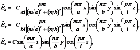 задача о собственных колебаниях в прямоугольном объемном резонаторе