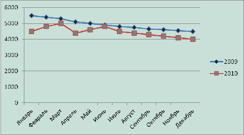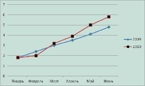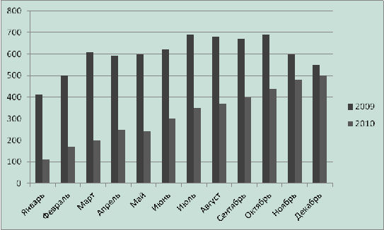 Рисунок 1. Продажа строительных материалов в I полугодие 2009 - 2010 гг.