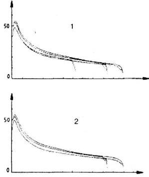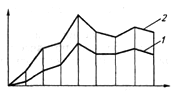 Рис. 5. Линейные графики: 1 и 2 - для первого и второго изделия