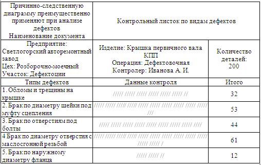 Рис. 4. Контрольный листок при контроле по качественным признакам