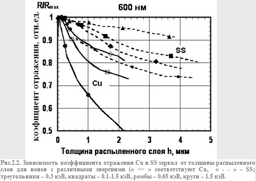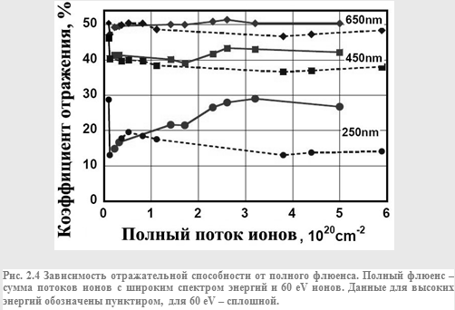 воздействие на отражательную поверхность зеркал. При достаточно большом флюенсе