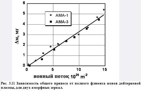 поглощения дейтерия зеркалами из аморфных сплавов.
