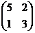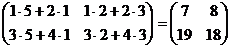 A = 4 - 6 = -2; B = 15 - 2 = 13; (AB) = det A ×det B = -26.