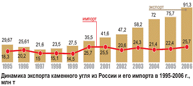 объёмам экспорта угля в мире после Австралии и Индонезии. С 1999 г. российский