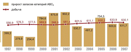 1997 году впервые получен прирост добычи. В настоящее время по добычи ТЭР