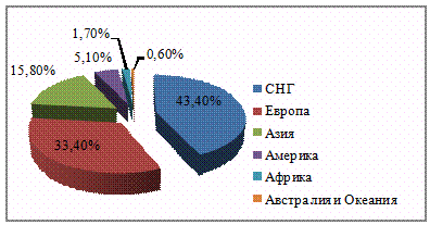 Союза - 24,8%), Африки - 6,2%, Америки - 4,3%, Австралии и Океании - 0,1% (рис.