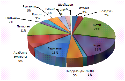 поступления осуществлялись из Российской Федерации - 36,4%, Китая - 7,5%,