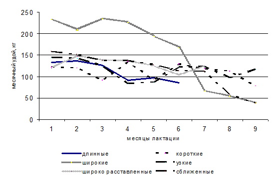 молочной продуктивностью отличались кобылы с длинным (1174,2±267,35 кг),