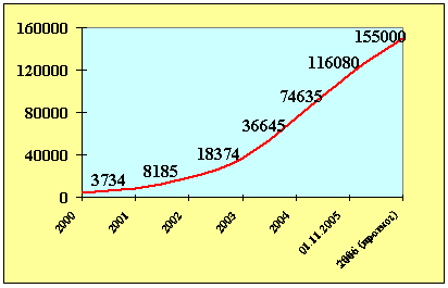 · количество абонентов за 2000-2005гг.