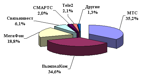 «ВымпелКом» /65,0 проц/ и «МегаФон» /35,0 проц/. Абонентская база МТС в Москве