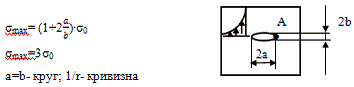 напряжения определяются кривизной отверстия и достигают максимума в точке А.