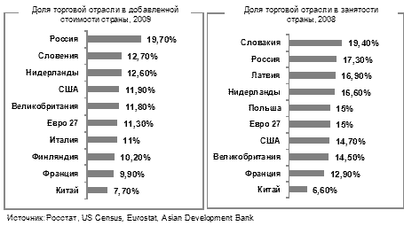 оптовой и розничной торговли в добавленной стоимости и в занятости страны