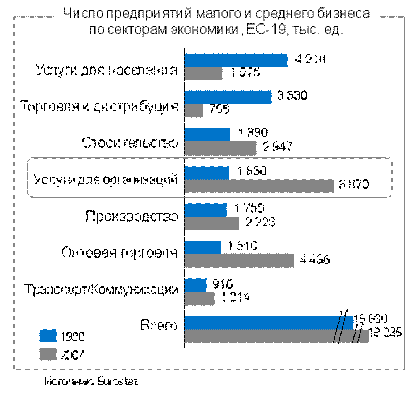 предприятий малого и среднего бизнеса по секторам экономики, ЕС-19