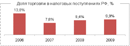 розничной торговли (свыше 10 трлн. рублей по году) доля налоговых поступлений