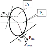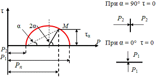 напряжению Р1 (горизонтальная площадка), касательные напряжения