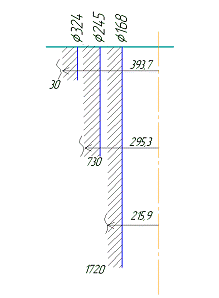 - конструкция скважины, состоящая из направления, кондуктора, и